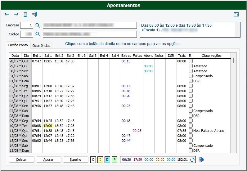 Totalmente integrado com a folha de pagamento, assume os afastamentos, férias, rescisões e feriados cadastrados neste módulo. Possui tela de apontamentos de fácil interação que possibilita fazer os acertos com rapidez e eficiência. Controla o banco de horas e permite a programação de exceções como folgas e trocas de horário. Atende a todos os requisitos legais, inclusive portaria 671 de 08/11/2021 do Ministério do Trabalho.