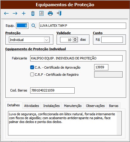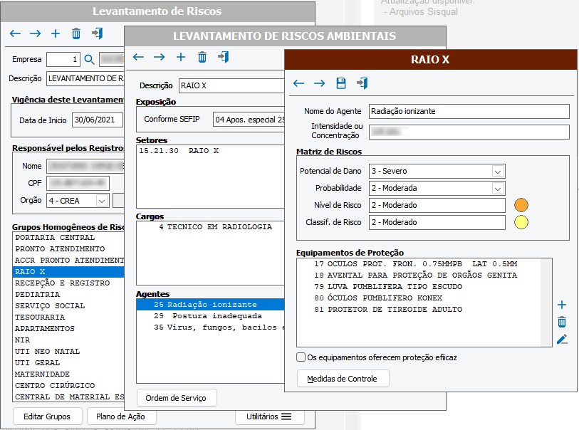 Controla os exames médicos vencidos, a vencer e não realizados, bem como a estatística anual de exames por setor. Acumula o prontuário clínico, odontológico e ambulatorial do funcionário. Permite o cadastramento dos Programa de Gerenciamento de Riscos (PGR) e da Matriz de Riscos com indicação de utilização de EPI/EPC e sua eficácia. Controla a entrega e a devolução dos EPI e emite o PPP.